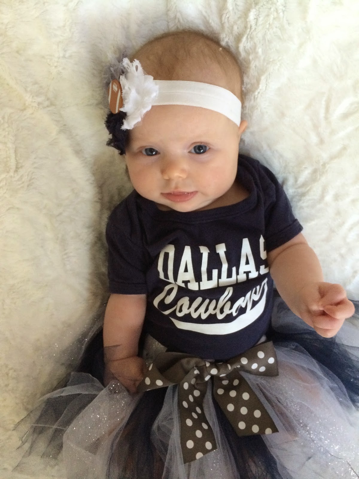 You are such a smiley, happy baby. The day (September 10th) you turned 3 months old you started giggling and laughing. I had to wake your Daddy up late that night so he could hear your first sweet little giggles. When you do get upset it's usually only because you are hungry or tired. A bottle or a quick nap always fixes your grouchy moods. Right after you turned 3 months old something seemed to click and you started sleeping through the night. You started going to bed at about 11 or 11:30 pm and not waking until about 7 or 8. This is much better than your previous midnight to 1 am parties then waking up again at 5 am. You seem to have figured out that nights are for sleeping! I started back to work 3 days a week this month. It makes me so sad to leave you on those days. You seem to enjoy your time with your Aunt Paula on Mondays, your Daddy on Wednesdays, and your Granny on Fridays though. None of us can imagine life without our sweet blue eyed girl.